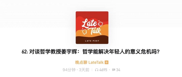 媒体视野|「晚点聊」播客对谈姜宇辉教授:哲学能解决年轻人的意义危机吗?