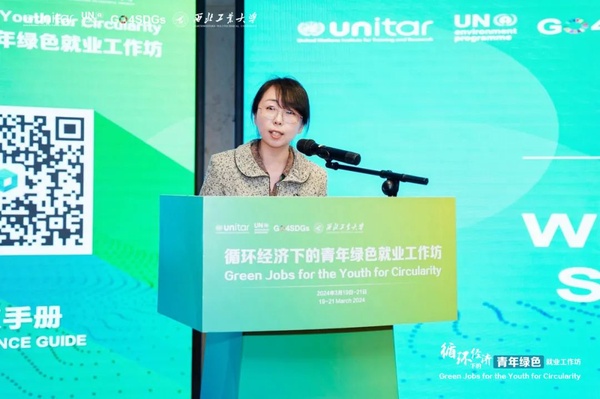 2024年3月19-21日,联合国训练所(UNITA)、联合国环境规划署(UNEP)主办,西北工业大学承办的“循环经济下的青年绿色就业工作坊”在西安举办。国际劳工组织、联合国妇女署、联合国开发计划署、联合国训练研究所、联合国环境规划署等国际组织,清华大学、北京大学、西北工业大学等国内高校,比亚迪等企业代表共同与会。我院王子蕲老师参会担任“社会需求的绿色技能”环节主持。
