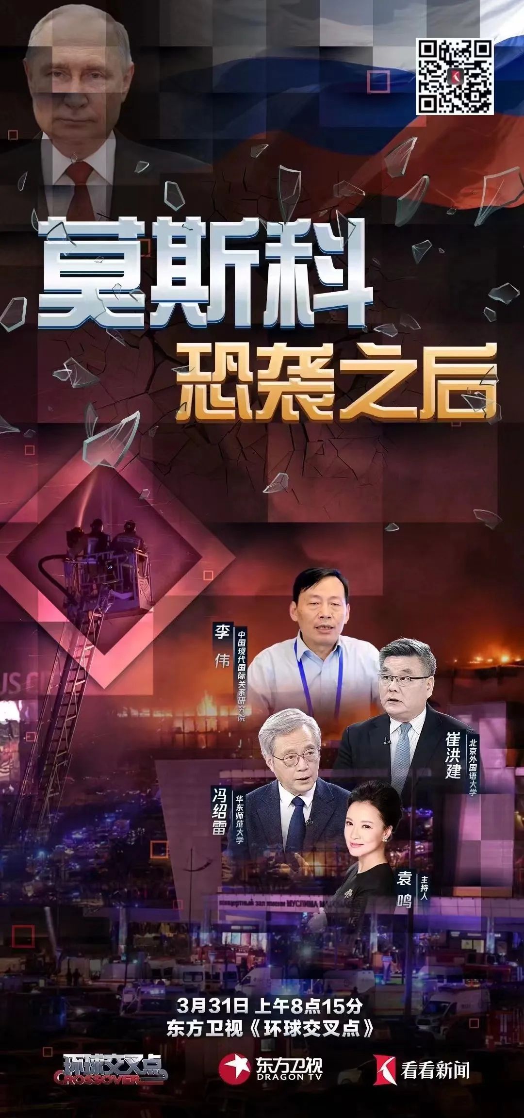 3月31日,华东师范大学俄罗斯研究中心主任、周边中心主任冯绍雷教授作客东方卫视《环球交叉点》节目,就莫斯科恐袭幕后真凶发表看法。
