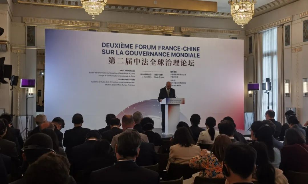 5月2日,由国务院新闻办公室、中国外文局指导,当代中国与世界研究院联合中欧美全球倡议共同主办的"第二届中法全球治理论坛"在法国巴黎举办。来自中法两国的百余位专家学者围绕"深化全球治理改革 共建多边主义未来"这一主题展开深入研讨交流。