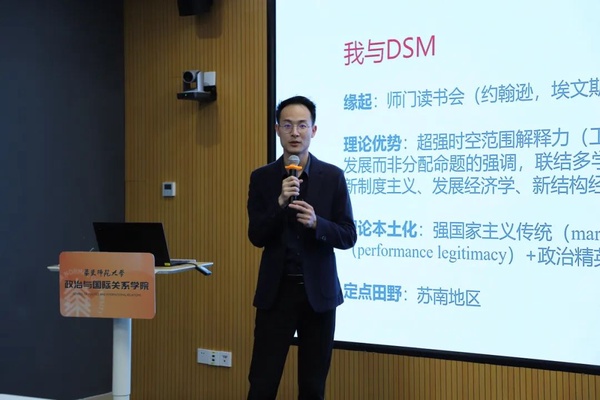 叶志鹏副教授分享了他与DSM的渊源,包括他的理论优势和本土化研究,以及在苏南地区的田野工作。他还介绍了自己的研究成果,包括地方政府与中国经济奇迹的关系,以及东亚发展型国家模式的转型。