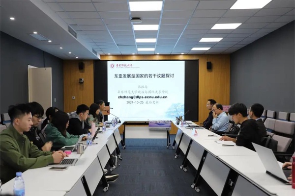 2024年10月25日下午,华东师范大学政治与国际关系学院张振华教授、公共管理学院叶志鹏副教授在闵行校区法商南楼228会议室就东亚发展型国家的相关问题作学术讲座。本次讲座由我院王向民教授主持,王逸帅副教授、师义帆老师以及我院部分学生列席本次讲座。