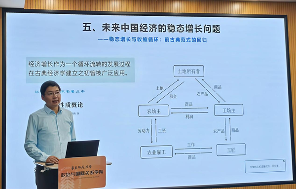 王玉柱研究员引用了前古典时期经济理论来支持其观点,认为世界经济的本质是循环流转的发展过程,并着重强调了开放经济体系下国际分配关系重要性。讲座现场,同学们积极提问。