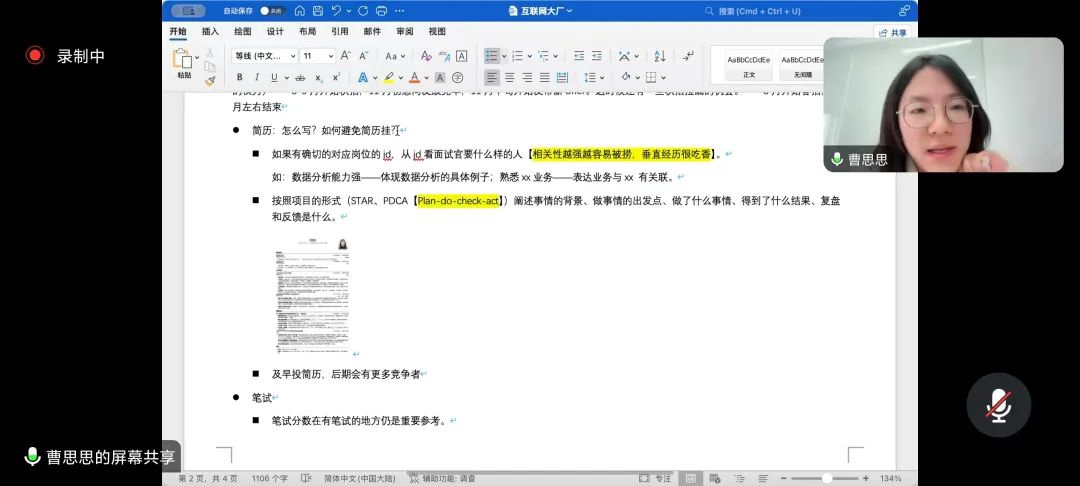2024届新闻与传播专业硕士毕业生、现于美团任产品经理的曹思思在线上分享了关于互联网企业的求职经验。曹思思着重分享了互联网企业面试中的侧重点以及技巧,建议同学们要了解简历所投公司的重点项目、业务组成等内容。她建议,在介绍自己时需要突出自己的优势,要向面试官展现校招生的年轻、好奇、拼劲、活力以及视野。