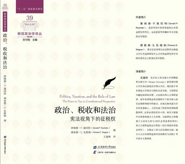 新书速递|王逸帅副教授译著《政治、税收和法治 宪法视角下的征税权》出版