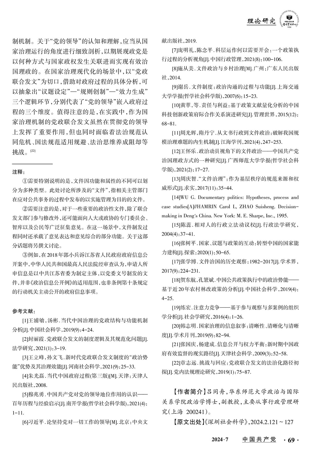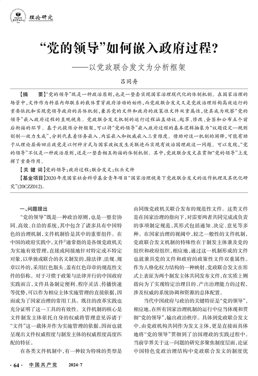 我院吕同舟副教授刊发于《深圳社会科学》2024年第2期的论文《“党的领导”如何嵌入政府过程?——以党政联合发文为分析框架》获人大复印报刊资料《中国共产党》2024年第7期全文转载。