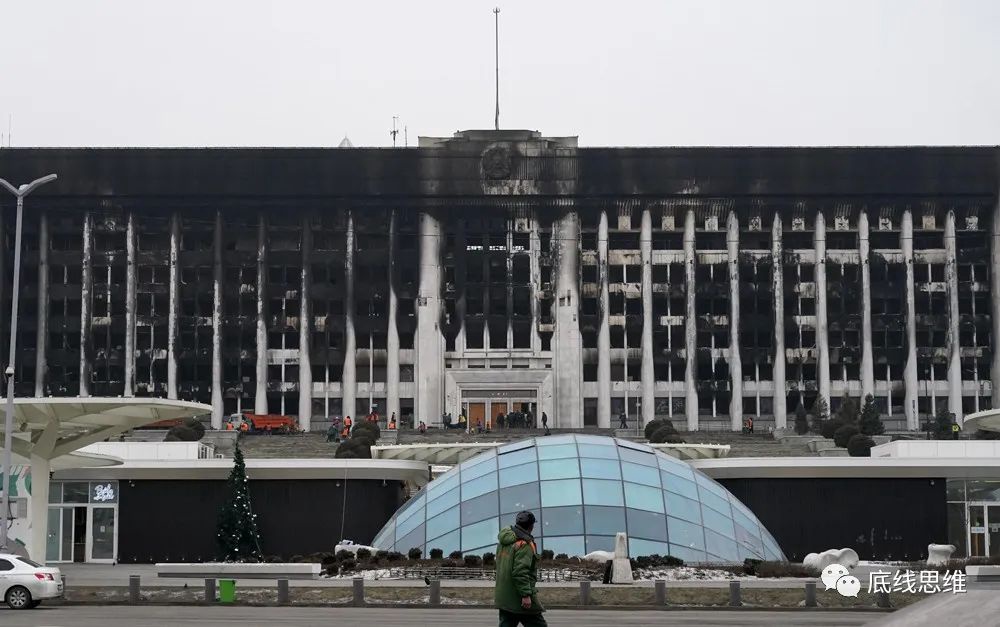 今年1月,哈萨克斯坦国内发生骚乱。阿拉木图市政府大楼遭纵火。@视觉中国