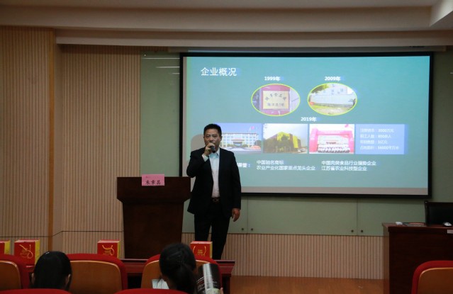 11月10日晚6:30,江苏省特产商会会长、国家农业产业化国家重点龙头企业江苏省骥洋食品有限公司董事长朱章其在法商北楼123报告厅为同学们进行主题为“历经千锤百炼,方能成就事业”的讲座。