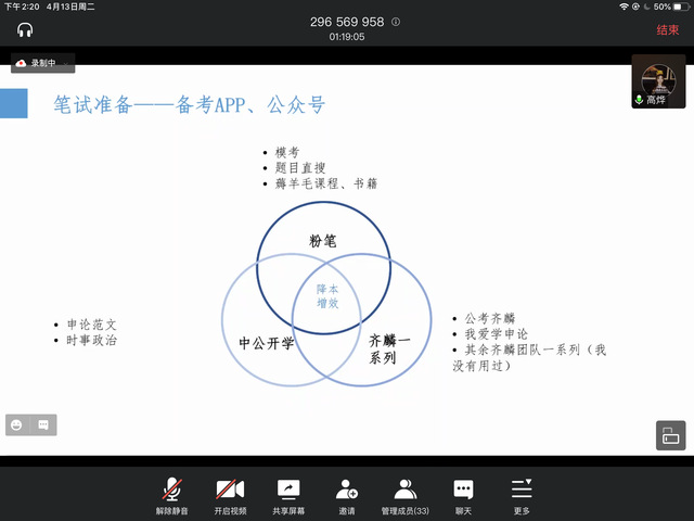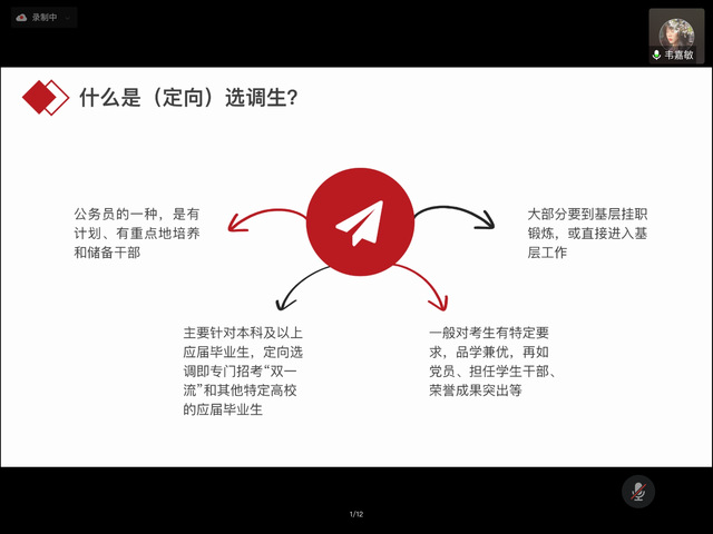 选调生作为党政领导干部的优秀后备力量和党培养选拔的重点对象,近年来愈发受到国家的明确鼓励和重点关注。4月13日下午,政治学系2018级新闻与传播专业研究生杨琳、高烨、韦嘉敏在线上会议分享了自身考取上海、浙江、广西等地选调生的经验,帮助有意备考选调生的同学们更有针对性地做好相关考试的准备,希冀更多同学投身基层、奋发成才。三位同学从自身经验出发,围