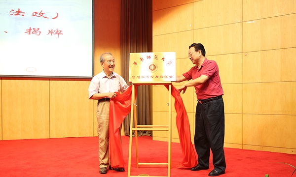 政治学系校友联谊会顾问代表吴铎和校友代表范德官为政治学系校友联谊会揭牌