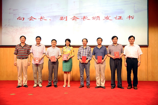 副校长、校友会常务副会长郭为禄与副校长范军共同为会长、副会长等颁发聘书