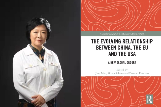 《中国、欧盟和美国之间不断演变的关系:新的全球秩序?》这部学术著作由门镜教授担任第一编著,和德国籍及英国籍的两名教授共同合作,2020年由Routledge出版社出版。该书仔细审视了中国、欧盟和美国在当代国际格局中所扮演的个人和集体角色。该书分析了这三方各自对当代全球秩序变化的战略、政策立场和行为,分析中重点关注三大问题和挑战:外交和安全政策;经济和贸易;以及能源和气候变化。本书讨论了中欧美的相对实力,以及三方在一系列决定性问题上的利益、信念和立场,还探讨了这三个大国之间的双边关系以及它们在更广泛的全球背景下三边互动以塑造国际政治的方式。该书由中美欧政治和国际关系领域的众多专家撰写,共分为五个部分。第一部分是全文的介绍和中美欧关系综述,第二部分是外交与安全政策的分析,第三部分是经济和贸易问题的分析,第四部分是气候变化和能源问题的分析,第五部分是全书的结论。