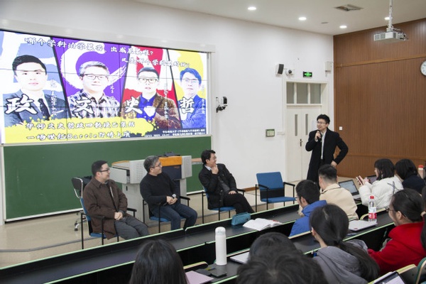 12月13日下午,在政治与国际关系学院院长吴冠军教授的邀请下,中文系汤拥华教授、历史学系瞿骏教授、哲学系朱承教授与吴教授齐聚《学术规范与学术伦理》课堂,从“哪个学科治学最苦、出成果最难?又是哪个学科最好玩?”等问题出发,展开了一场精彩绝伦的论辩。