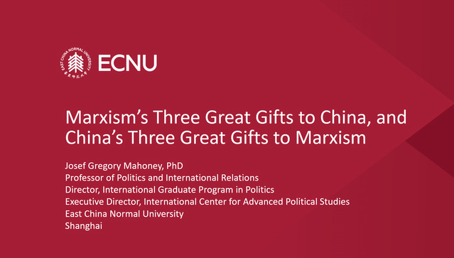 11月28日上午,应兰州大学马克思主义学院邀请,我院约瑟夫·格雷戈里·马奥尼(Josef Gregory Mahoney)教授通过腾讯会议作线上学术报告,题为《马克思主义对中国的三大贡献以及中国对马克思主义的三大贡献(Marxism’s Three Big Gifts to China, andChina’s Three Big Gifts to Marxism)。