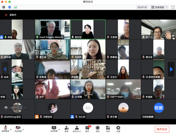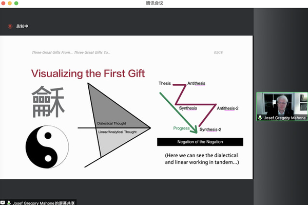 11月28日上午,应兰州大学马克思主义学院邀请,我院约瑟夫·格雷戈里·马奥尼(Josef Gregory Mahoney)教授通过腾讯会议作线上学术报告,题为《马克思主义对中国的三大贡献以及中国对马克思主义的三大贡献(Marxism’s Three Big Gifts to China, andChina
