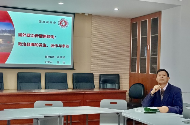 由华东师范大学政治与国际关系学院何修猛老师指导并主持的“四度”读书会第九期活动,于11月26日下午在法商北楼329举行。2020级新闻与传播专业硕士研究生曾怡就《国外政治传播新转向:政治品牌的发生、运作与争议》期刊论文作读后分享。何老师指导的硕士研究生关瑾蓉、郭雪姣、张海梅、李欣昱等9名同学参会。