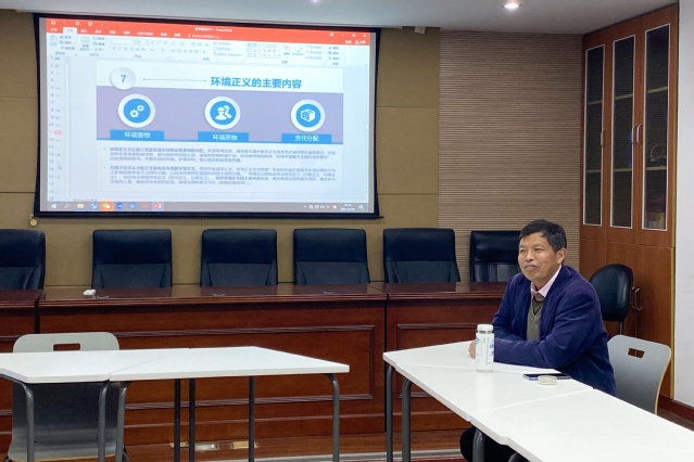 由华东师范大学政治学系何修猛老师指导并主持的“四度”读书会第三期活动,于4月20日晚18:30在法商北楼329举行。2019级新闻与传播专业的研究生郭雪姣围绕本次读书会的主题做了题为“环境正义:城乡环境问题的责任分担限度”的分享。何老师所指导的硕士研究生关瑾蓉、张海梅、曾怡、李欣昱四位同学参会。 郭同学在会上针对“环境伦理”“环境正义”