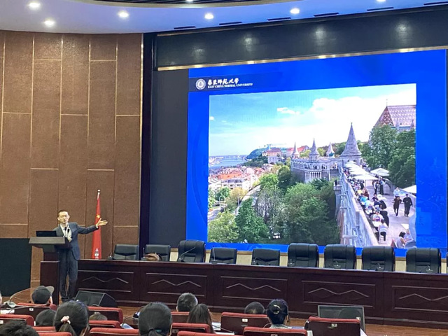 邰老师首先以有“东欧小巴黎”之称的布达佩斯展开介绍,为大家展示了风光旖旎的多瑙河畔、历史厚重的布达佩斯英雄广场,使同学们身临其境地体验到了匈牙利独具特色的风土人情,并以此展开匈牙利多姿多彩的历史画卷。从公元1000年的匈牙利王国开始,马扎尔人开启了匈牙利历史进程。从抗击奥斯曼土耳其的奴役到反对哈布斯堡的压迫,从奥匈帝国的辉煌到一战后的解体,邰老师简要介绍了这段跌宕起伏的匈牙利历史与人文。接下来,邰老师重点对苏联模式对匈牙利人民共和国的影响进行了深入分析,同时在匈苏关系上提出了很多独到的见解。
