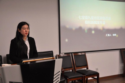 2015级新闻传播硕士(政治传播)10位首批进驻实习基地的同学进行了成果展示。他们将自己四个月来在闵行区各机关、街镇实习的实践经验与所学理论相结合,完成了各具特色的作品,并借助精致的PPT和出色的演讲,赢得了在座各位老师的认可。