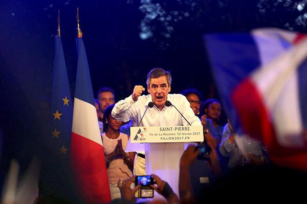 当地时间2017年2月12日,法属留尼汪岛,法国总统候选人弗朗索瓦·菲永在当地召开竞选集会