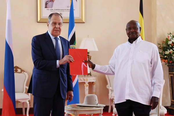 当地时间2022年7月26日,乌干达恩德培,俄罗斯外长谢尔盖·拉夫罗夫(左)在会见乌干达总统约韦里·卡古塔·穆塞韦尼(右)。(图自视觉中国)