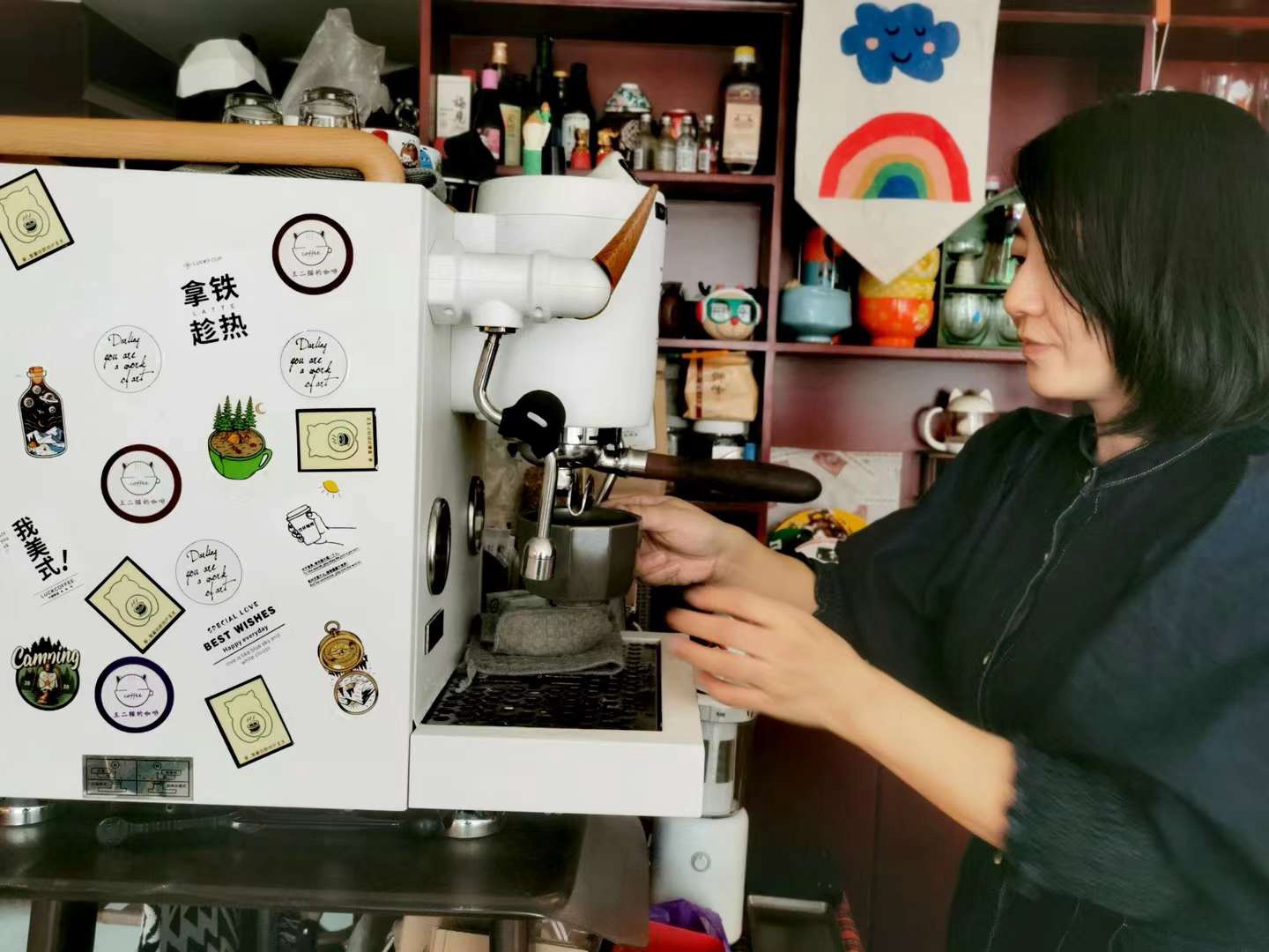 王谢平认为,在和咖啡有关的事情上,她是一个十足的“行动派”。博士毕业后,她先是用自家的轿车玩起了“后备箱咖啡”的小情趣,很快她又在为了便利工作而租来的家里布置了一间特别而温馨的家庭咖啡馆。她说:“当你很想做成一件事,而这件事你踮踮脚又恰好够得到,那就不要犹豫,适当冲动一把。对我而言,写论文和开咖啡店都是这个道理。”