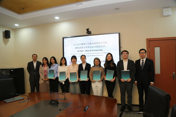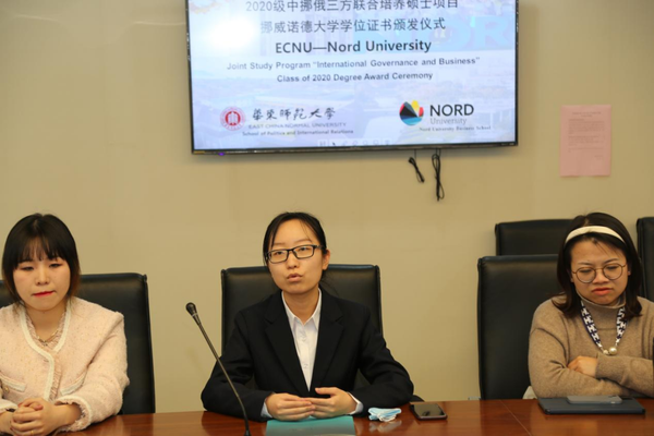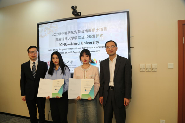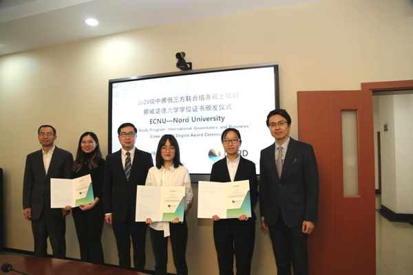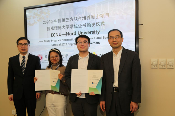 华东师范大学中挪俄“国际治理与商务”全英文三方联合培养硕士项目,原计划与挪威诺德大学商学院、莫斯科国际关系学院合办,2019年试运行招生,2020年正式启动。因疫情影响,近年来我院各届学生均在挪威诺德大学完成相应的学习,今年我院学生首届获得诺德大学硕士学位。