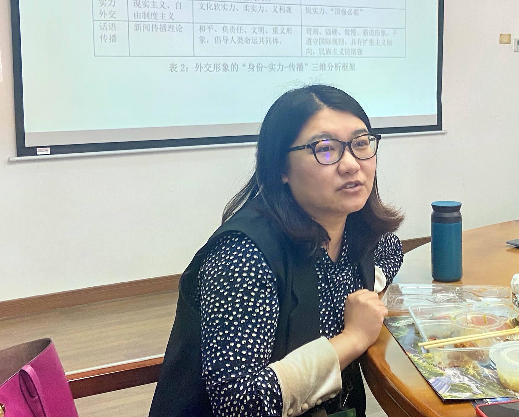 师义帆老师提出中国外交形象是随着时代发生变化的,可以从不同的时间维度来考察外交形象的演进。王玏老师提出可以将当今的时事热点融入对中国外交形象建构过程的分析中。刘笑言老师提出中西方对于中国形象的认知差异,并讨论如何避免出现自说自话的问题。吕同舟老师就中国外交形象的对内传播和对外传播效果的差异展开讨论。