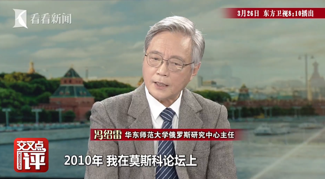 2023年3月26日,华东师范大学政治与国际关系学院教授、俄罗斯研究中心主任冯绍雷作客东方卫视《环球交叉点》节目,就中俄元首会晤、乌克兰危机下的大国博弈等相关议题发表看法。
