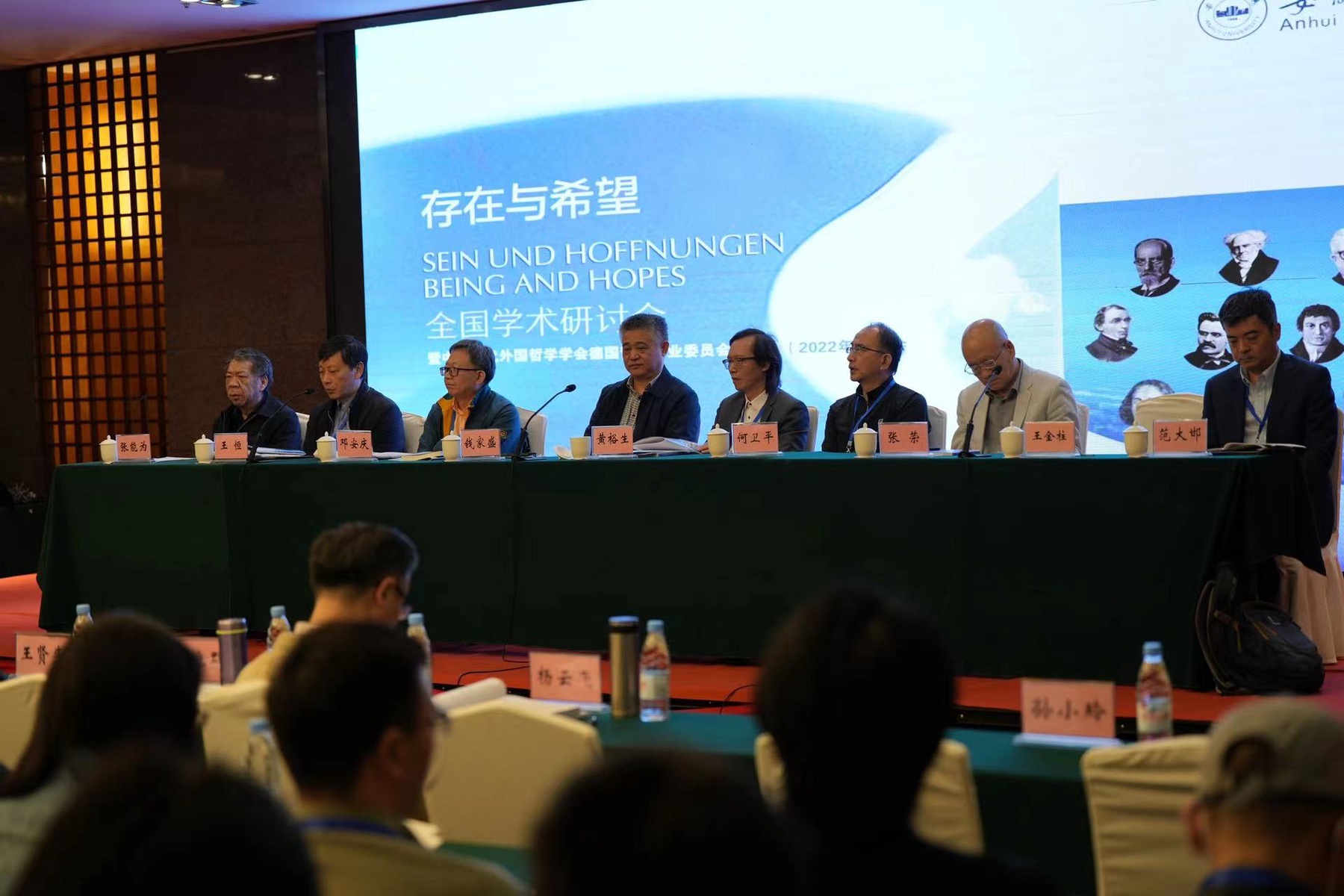 2023年4月15-16日, 由中国现代外国哲学学会德国哲学专业委员会主办,安徽大学哲学学院承办的「存在与希望」——全国学术研讨会暨中国现代外国哲学学会德国哲学专业委员会第五届(2022年)年会,在合肥市梅山饭店举办。德国哲学专业委员会会长、清华大学黄裕生教授,安徽大学副校长钱家盛教授,安徽大学哲学学院院长张能为教授等出席会议并致辞。我院学子井德宇应邀参加了此次会议并作分享。