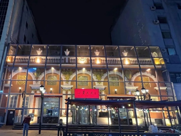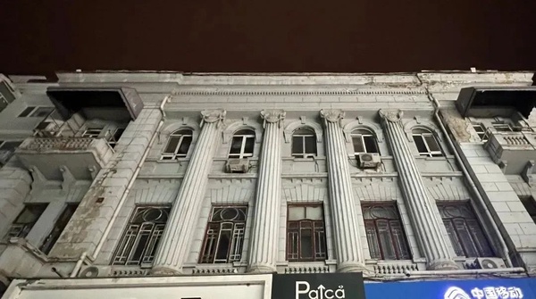 通体橙色的外墙,装饰着白色的立柱绘以金色雕塑。从外墙的介绍铜牌上,得知它曾是丽都电影院,建于1926年,砖木结构,折衷主义风格。1926年,也就是中央大街的石道落成的那一年,比上海的大光明电影院开始运营还要早两年。彼时,冰城的男女老少已经能够透过那些灰色的荧幕,感受电影艺术的魅力。