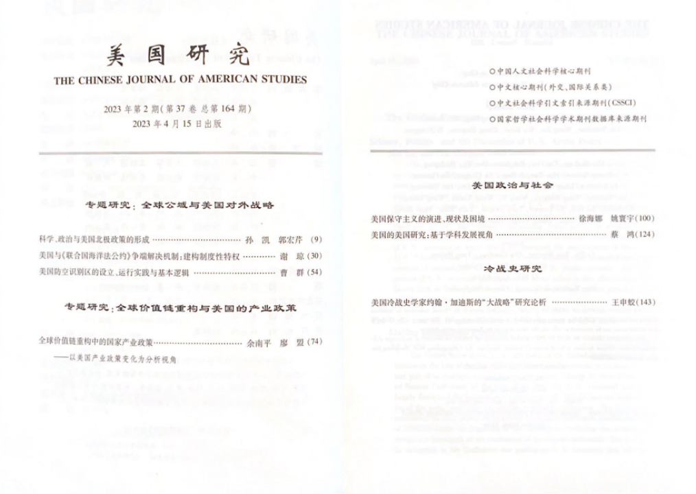 近日,我院余南平教授和硕士研究生廖盟于《美国研究》2023年第2期刊发《全球价值链重构中的国家产业政策——以美国产业政策变化为分析视角》一文。