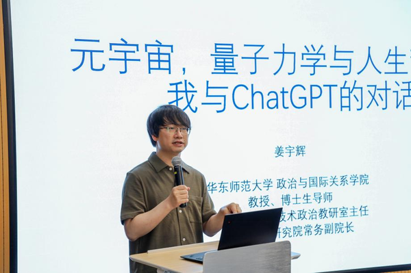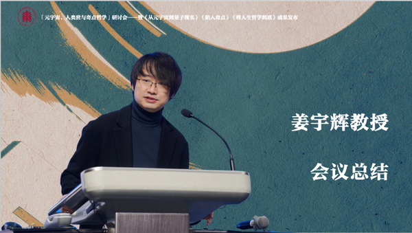 华东师范大学政治与国际关系学院教授、奇点政治研究院常务副院长、《将人生哲学到底》作者姜宇辉教授做论坛主旨演讲《元宇宙、量子力学与人生哲学》。姜宇辉教授把他跟ChatGPT关于元宇宙关于量子力学和人生哲学的对话摘录并呈现,并指出ChatGPT也有一个很大的问题,它的思考仅仅是梳理性的,会就某个问题提出一些思路,但是在给出思路时无法做到继续往前推进,打开可能性的方向。最后姜宇辉教授认为,ChatGPT的思考对我们理解元宇宙和量子力学以及人生现实有非常巨大的帮助,他也希望未来跟ChatGPT有进一步的合作, 一起思考,进而打开人类思考未来的空间。