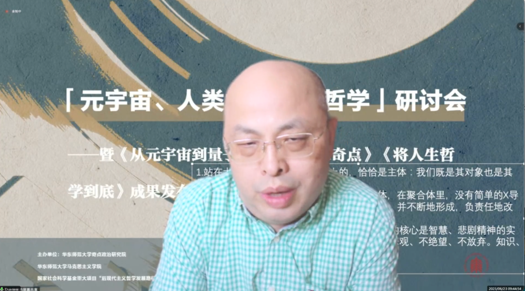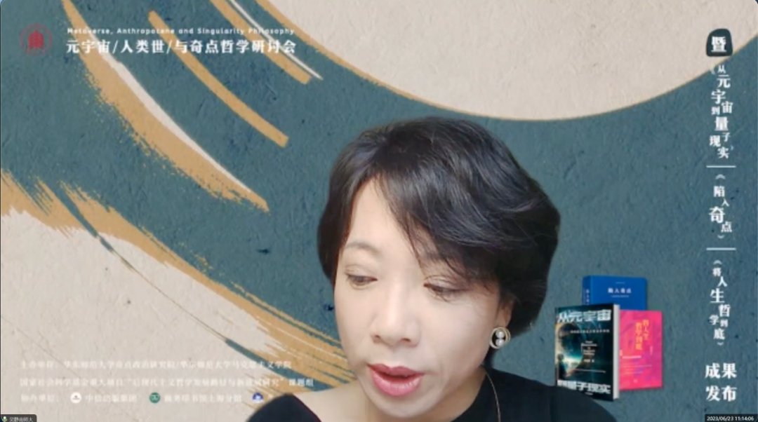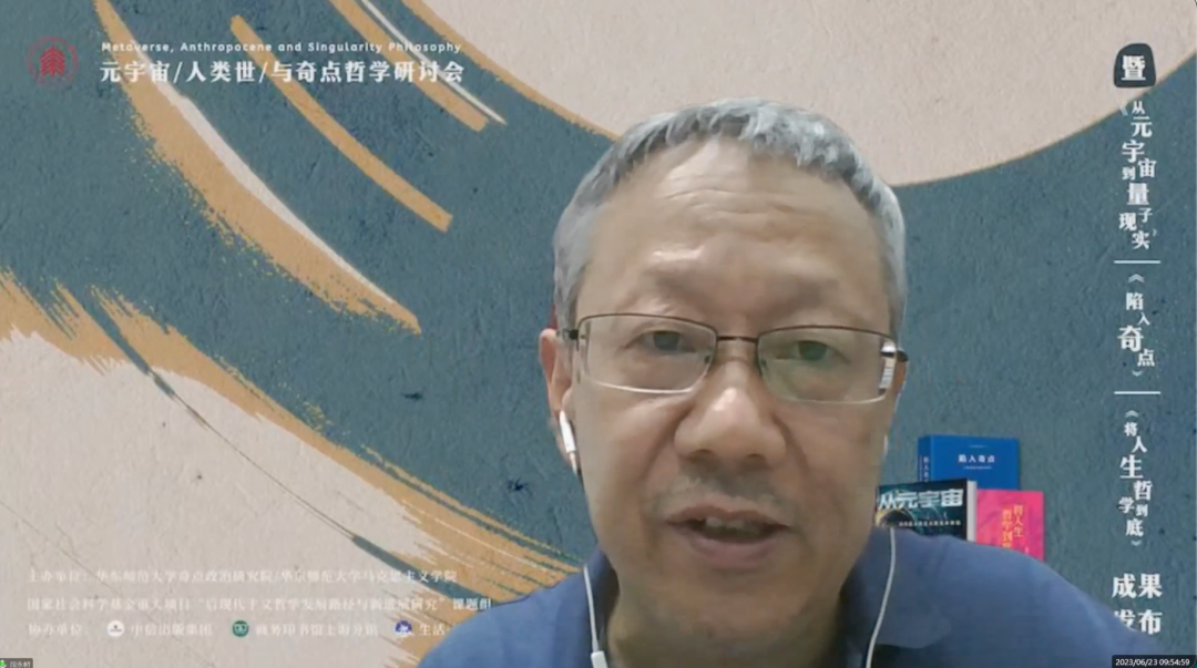 2023年6月23日,由华东师范大学奇点政治研究院、华东师范大学马克思主义学院、国家社会科学基金重大项目“后现代主义哲学发展路径与新进展研究”课题组联合主办,由中信出版集团、商务印书馆上海分馆、生活·读书·新知三联书店协办的“元宇宙、人类世与奇点哲学”研讨会——暨《从元宇宙到量子现实》《陷入奇点》《将人生哲学到底》成果发布在华东师范大学闵行校区法商南楼228会议室圆满举行。