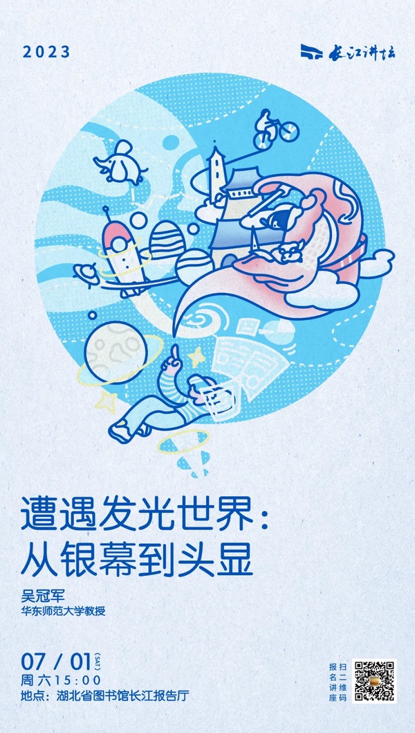 2023年7月1日(周六)15:00,我院院长吴冠军教授将于湖北省图书馆长江报告厅作题为「遭遇发光世界——从银幕到头显」的讲座。敬请期待!
