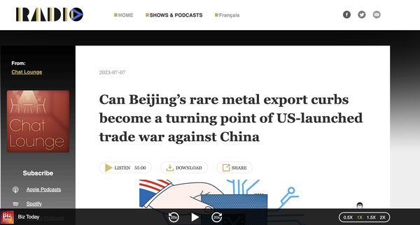 海外买家可能很快就会发现很难购买到与两种主要芯片制造稀有金属相关的产品,因为中国收紧了出口管制,以回应西方对贸易技术的遏制。谁将遭受最大的影响?在美国发起的对华贸易技术战中,北京方面能否扭转局面?中国未来还会打什么牌?此次栏目中,马奥尼教授围绕上述问题发表观点。