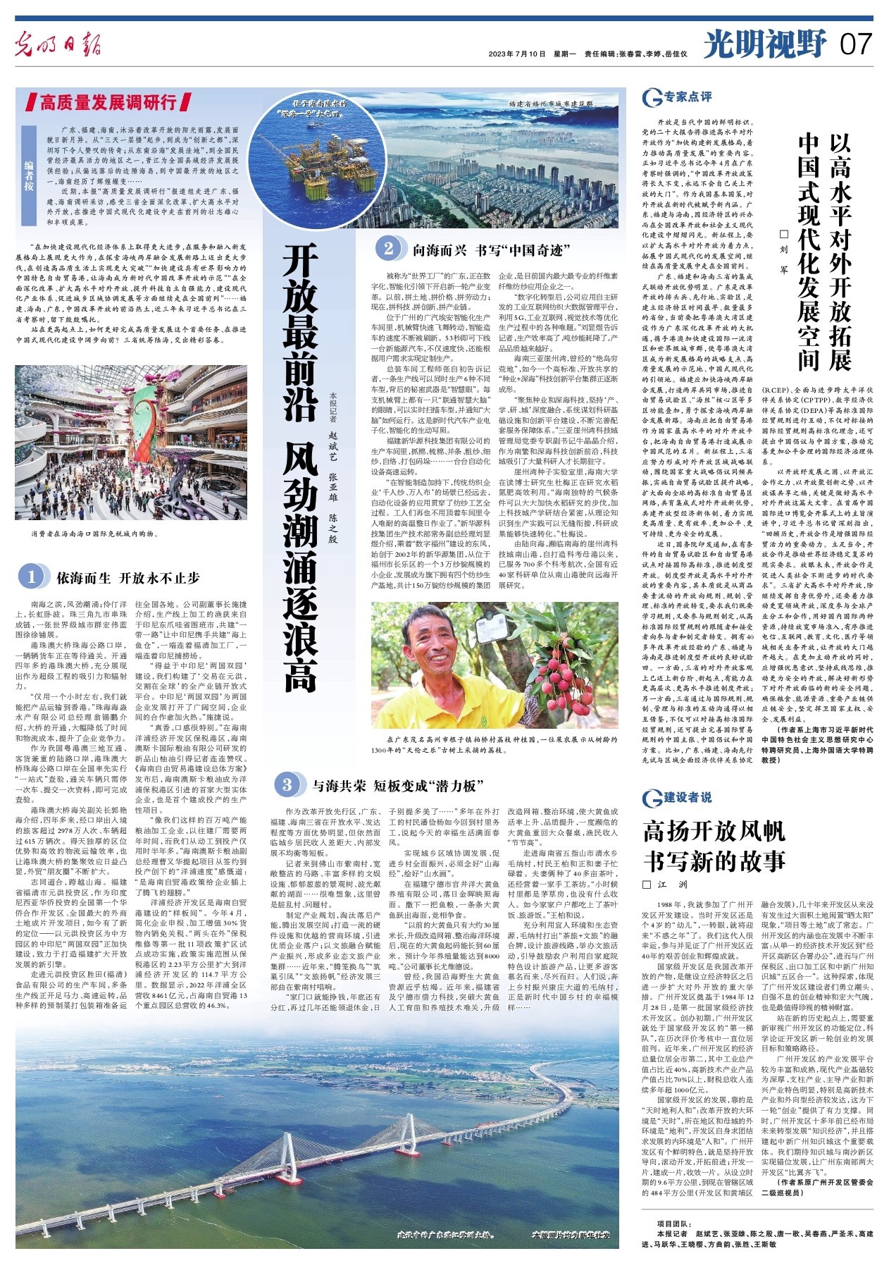 开放是当代中国的鲜明标识。党的二十大报告将推进高水平对外开放作为“加快构建新发展格局,着力推动高质量发展”的重要内容。正如习近平总书记今年4月在广东考察时强调的,“中国改革开放政策将长久不变,永远不会自己关上开放的大门”。作为我国基本国策,对外开放在新时代被赋予新内涵。广东、福建与海南,因经济特区的兴办而在全国改革开放和社会主义现代化建设中熠熠闪光。新征程上,要以扩大高水平对外开放为着力点,拓展中国式现代化的发展空间,继续在高质量发展中走在全国前列。