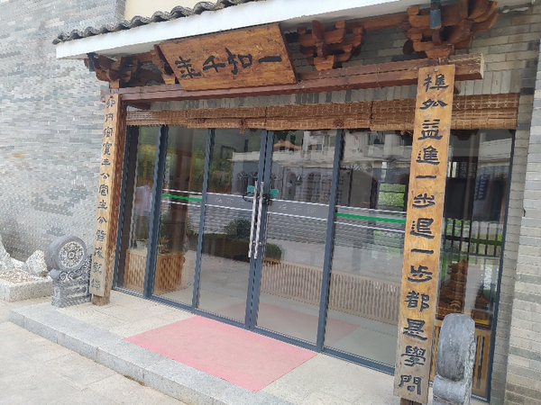 小镇内楼台亭阁、道路的命名,楹联的广泛使用、晨钟的设置,“人生如莲”的匾额、《劝学》《大学》《韩非子》《道德经》等名篇的镌刻,儒道法等创始人画像设置于厅堂,让人自觉研习传统文化,以点燃理想,照亮生活;而多种书法字体版本的《师说》,无不警示着“不可一日不读书”的重要性。