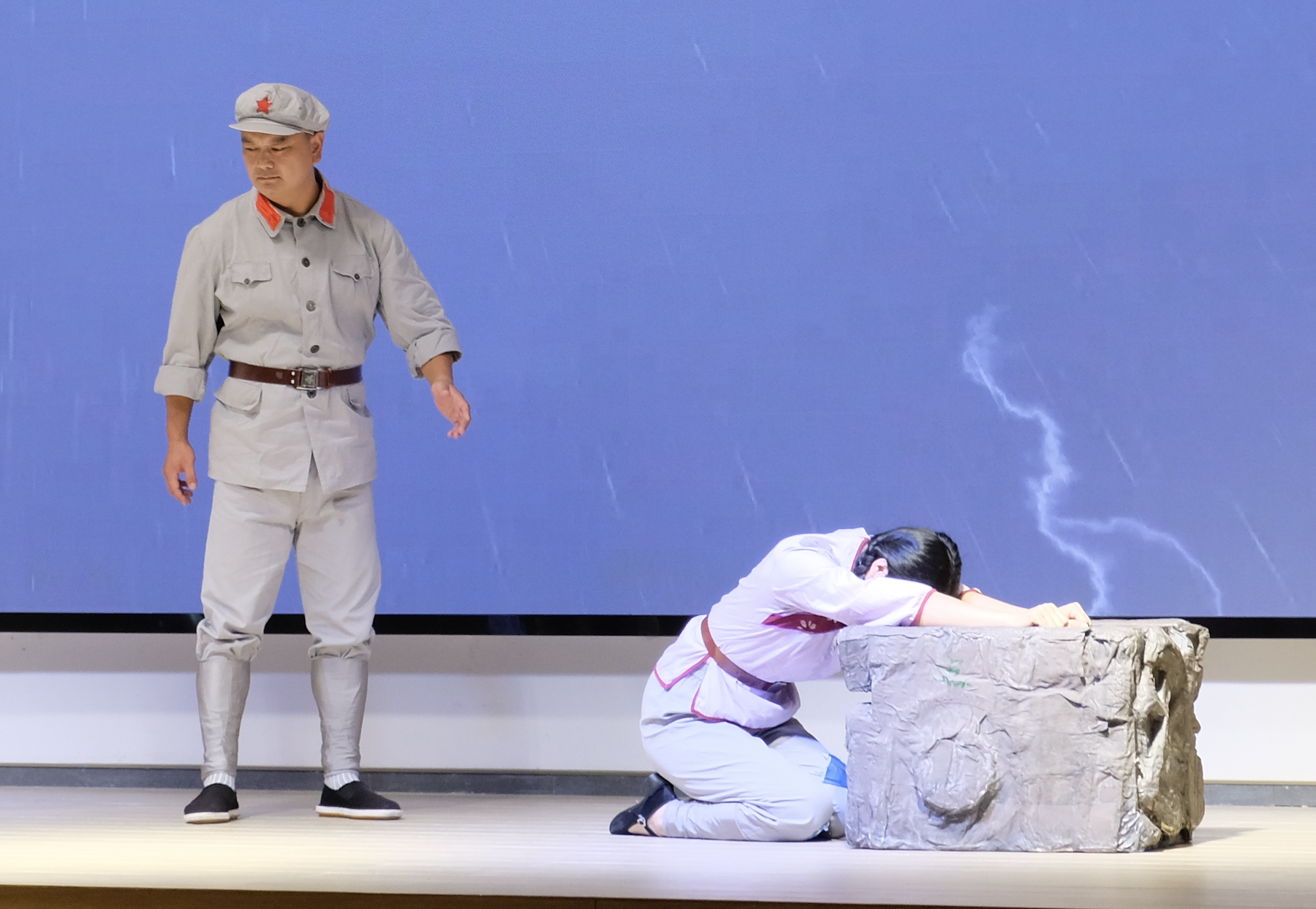 7月7日晚上,同学们在三度书院邂逅了赣南采茶歌舞剧院带来的文艺表演。在表演当中,红色基因与地方特色表演艺术采茶戏相融合,展现了留守在中央苏区红军和群众与白军抗争的动人故事。客家风情与现代歌舞艺术的结合,生动展现了赣南的地方特色,呈现了精彩绝伦的演出。