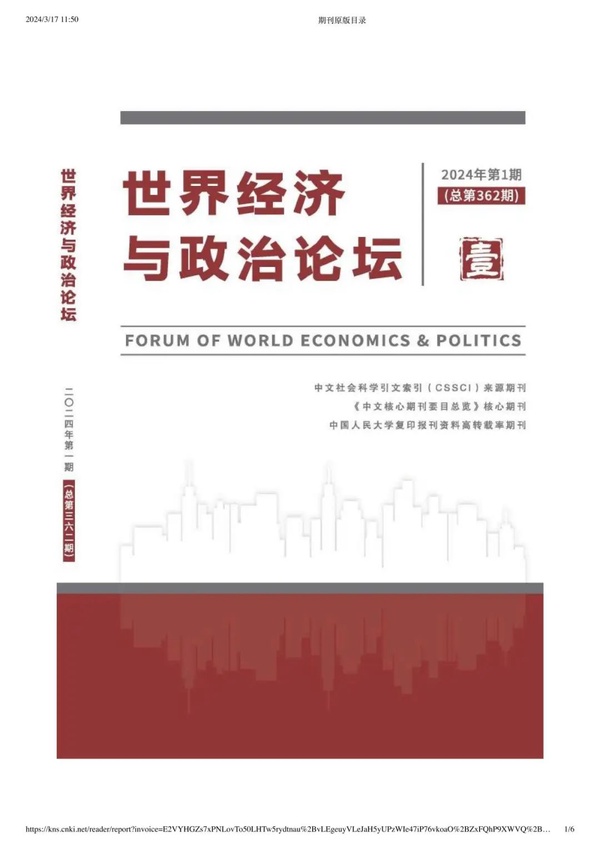 学术发表|余南平 张翌然:国际关系演变的技术政治解释——以美国对华技术博弈为分析视角