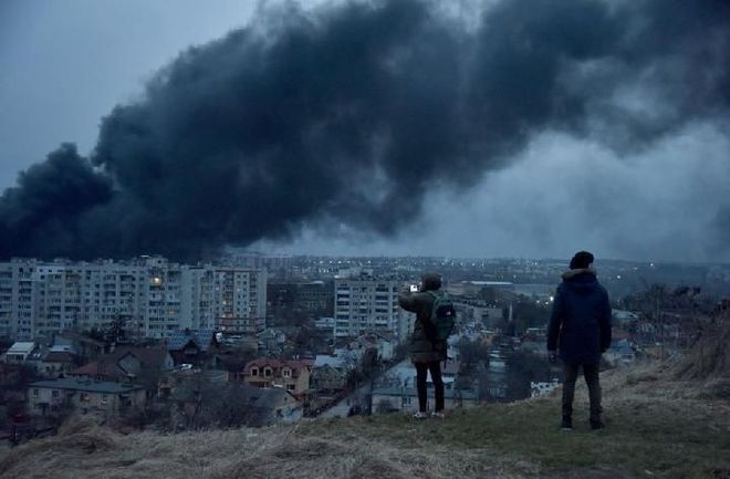 乌克兰利沃夫,空袭后浓烟升起(新华社)