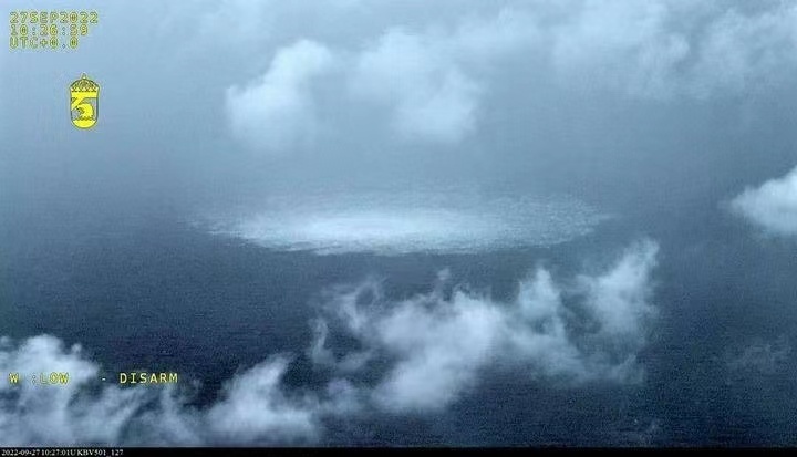 瑞典海岸警卫队2022年9月27日发布的航拍照片显示的是一处“北溪”天然气管道泄漏点(新华社)